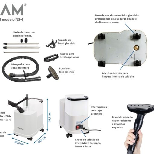- Mangueira do vapor com capa protetora e bocal de saída do vapor mais resistente.
